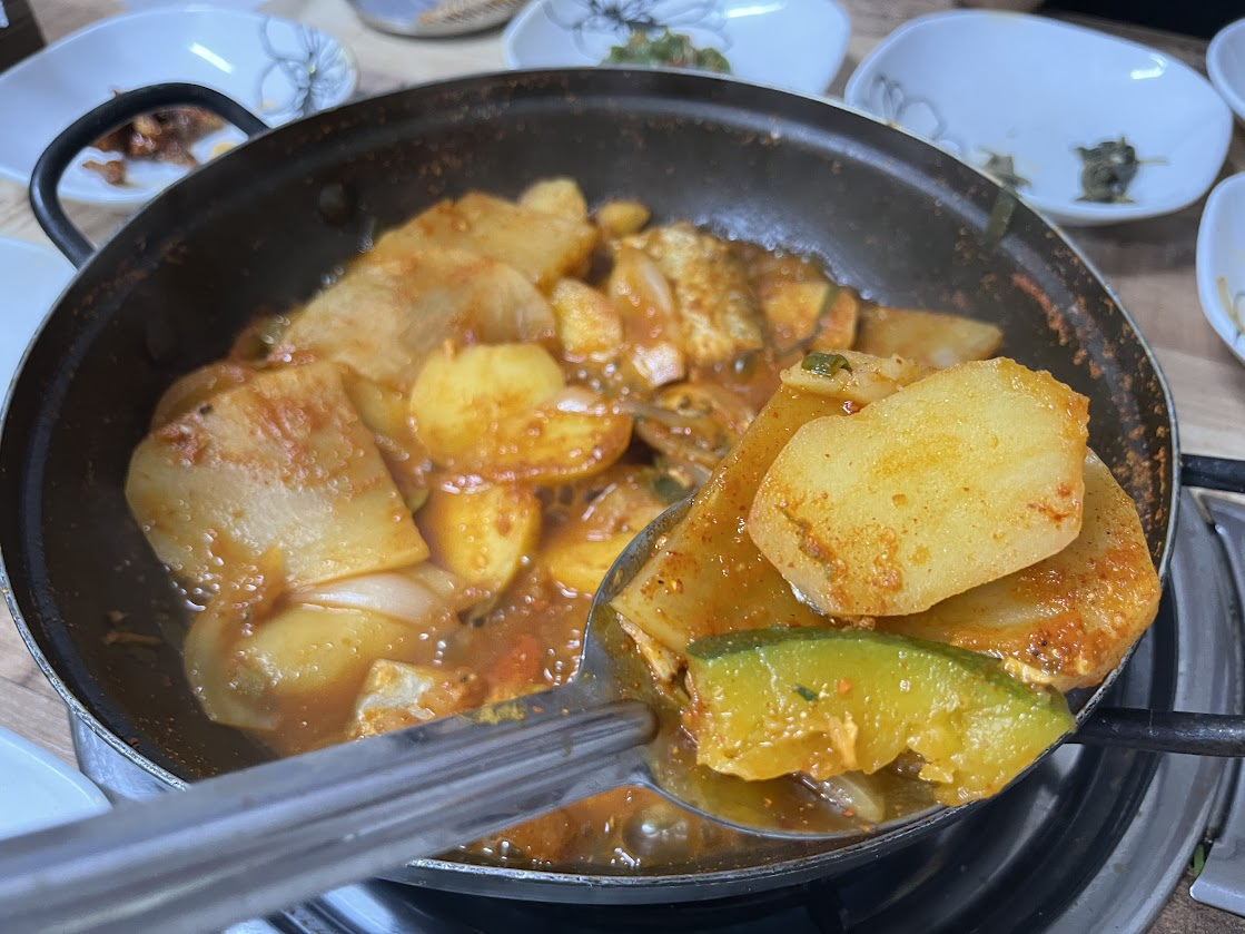 신선한 갈치와 감자, 무, 애호박 + 자극적이지 않은 양념